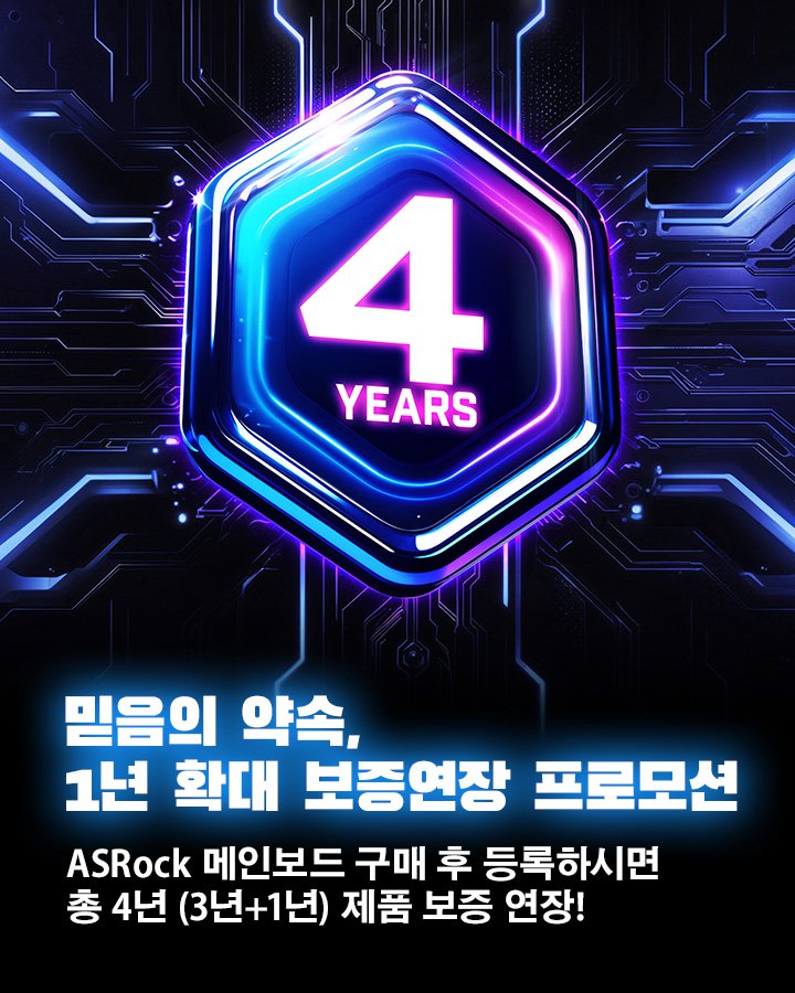 *. ASRock 4년(3년 + 1년) 연장 보증(“연장 보증”)은 ASRock Korea에서 제공합니다.