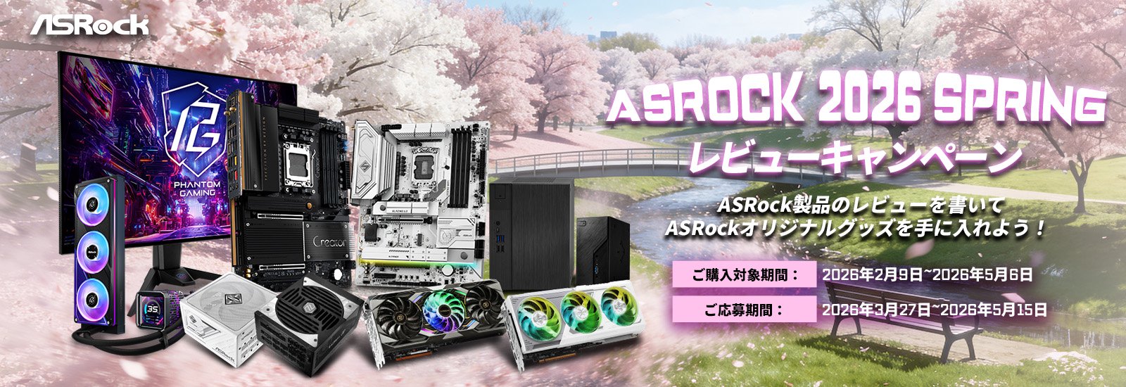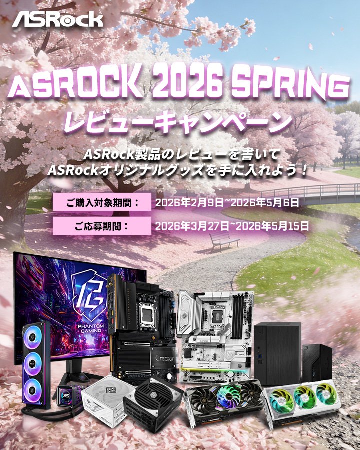 ご購入いただいた対象のASRock 製品を、キャンペーン期間中にレビューを投稿しご応募いただくと、先着100名様にASRockオリジナルグッズをプレゼント!!